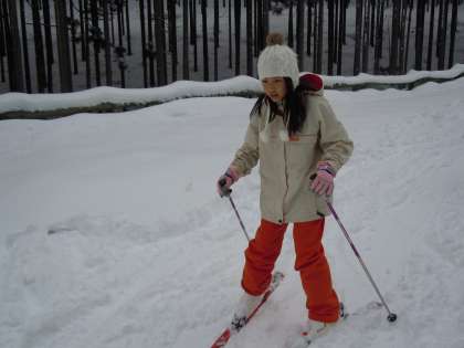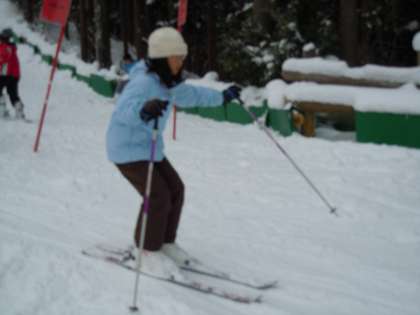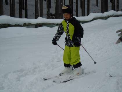 2日目の午前中は、スキー練習をしました。花背山の家にあるゲレンデでスキー靴を履いてすべったり歩いたり転んだりする練習をしました。その様子4です。