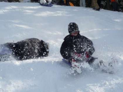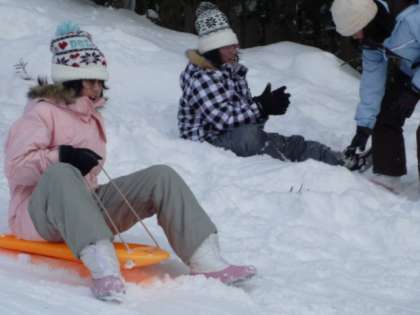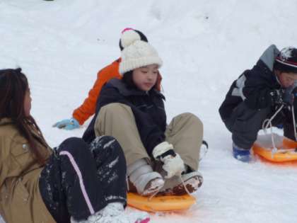 午前中にスキーをしたゲレンデで、午後は思いっきりそりを楽しみました。