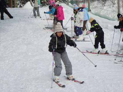 3日目の活動はスキーでした。今回が初めてのスキー体験の子どもも多くいましたが、丸1日スキーを練習したので、みんなメキメキ上達しました。スキーの様子その2です。