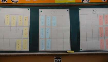 みんなが発表してくれた言葉を,表にしてまとめました。