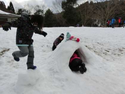 雪合戦をする人やかまくら作りをする人,もう一度ソリ滑りをする人に分かれ,それぞれ楽しんでいました。