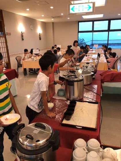 バイキング形式で好きなものを選んで,たくさん食べることができました。