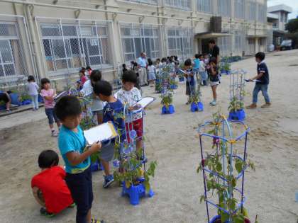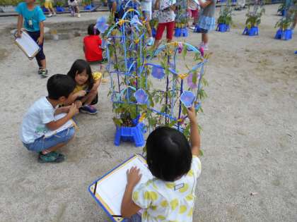 なつやすみのあいだは,おうちで おみずやりをがんばってくださいね。はなが,さいたあとは,どうなるかな?また,2がっきにがっこうでおしえてくださいね。