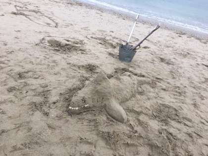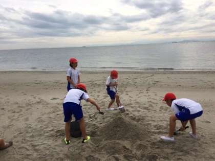 砂浜で,砂の造形に挑戦しました。子どもたちは,グループで協力して,いろいろなものを形作りました。そして,素敵な作品が出来上がりました。