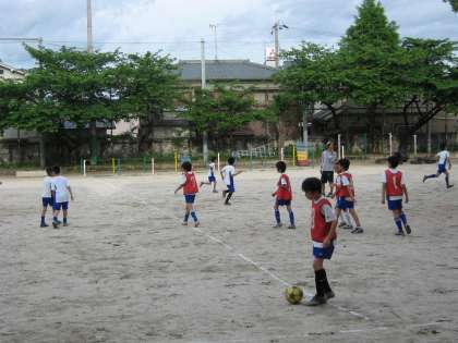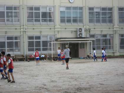 ゲームを中心に体育でするときより,パスワークやドリブルなど技術的なことも教えながら,練習に取り組んでいます。