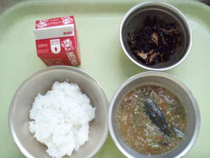 今日の給食は、「夏野菜のあんかけごはん」と「ひじきの煮つけ」でした。