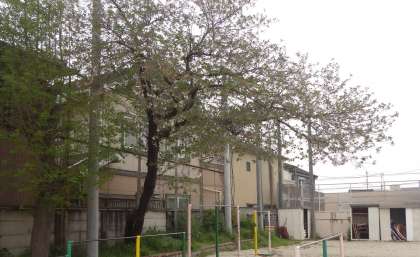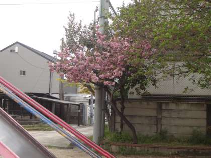 サクラの木も花びらが散り,葉がたくさん増えてきました。