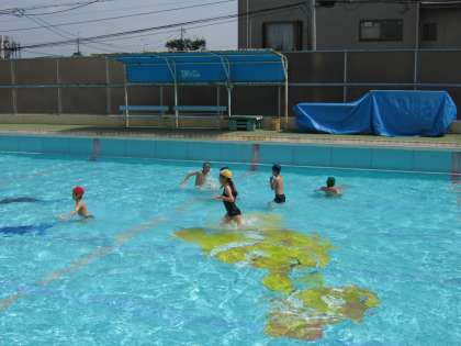 梅雨の中休み,6月の晴天のもとプール開きをしました。