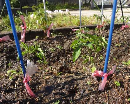 環境委員会で管理している畑に,ミニトマトといちごが植えてあります。