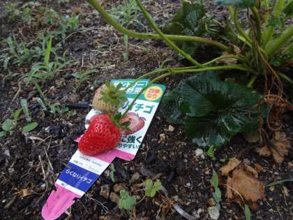 イチゴは大きな実をつけて,だんだんおいしそうな赤色になってきました!