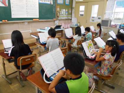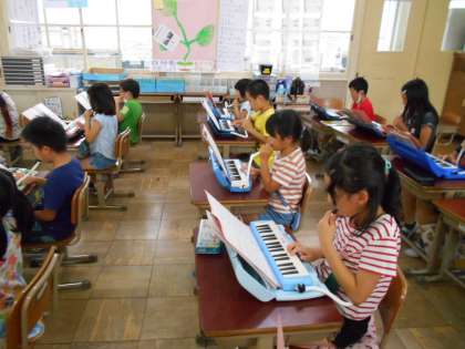 音楽の時間に「キズナ合そう」の練習に取り組んでいます。1年生の時は,すずやカスタネットを担当していました。2年生のパートは,鍵盤ハーモニカです。ドレミで歌ったり,指の動かし方やタンギングを確認しながら取り組んでいます。子ども達は,この「キズナ合そう」のメロデイーが大好きなようです。メキメキ上達してきています。これからも楽しく練習していきたいと思っています。