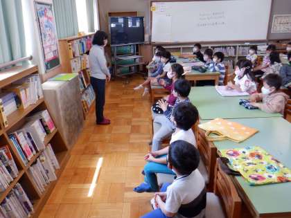 本の並び方,ラベルの秘密などについてお話いただき,子どもたちも興味深々の様子でした。