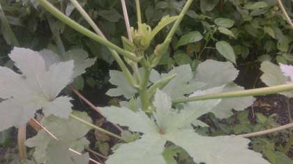 理科の学習で観察している「ホウセンカ」「ヒマワリ」「オクラ」が成長しました。ヒマワリの高さは,1メートル36センチでした。オクラの葉の数もふえ,とても大きくなっていました。オクラの実もなっていました。子ども達と一緒に観察するのが楽しみです。
