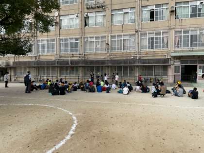 コロナ禍で実施が危ぶまれましたが,秋晴れの日差しの下,6年生の修学旅行が始まりました。
