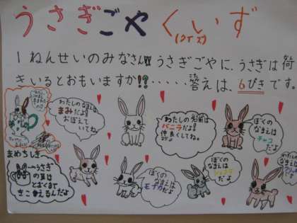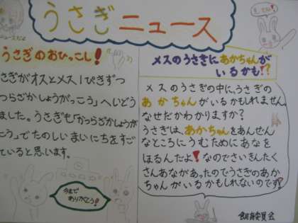 ウサギニュースやウサギクイズを作って,廊下に掲示しています。