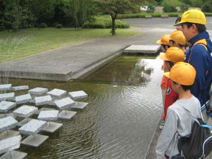子ども達はすてきな彫刻をみつけては、