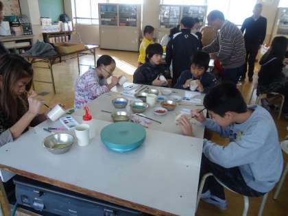 清水焼の湯飲み茶わんに絵付けをする体験をしました。