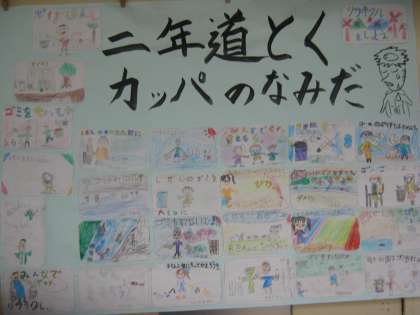 カッパが悲しまないよう,山や川にゴミが増えないようにするための,ミニポスターを描いてみました。