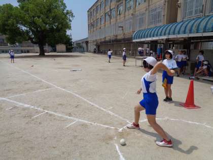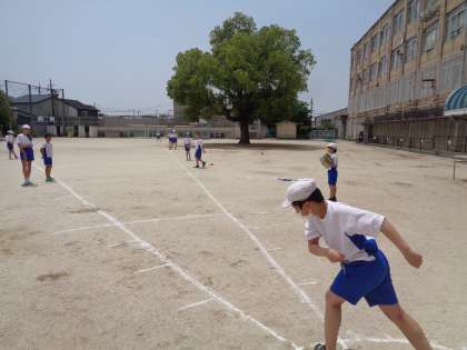 5年 体力テスト「ソフトボール投げ」