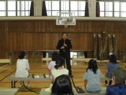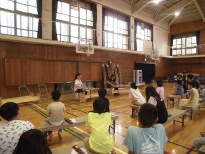 文化庁の体験教室で、邦楽体験を行いました。お琴や尺八の演奏を聴きました。日本の楽器の音色に子どもたちもじっと耳をすませていました。