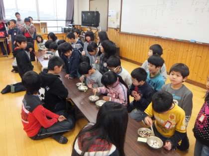 昼休みには、中学年の豆つまみ大会がありました。接戦で,4年生のチームが優勝しました。
