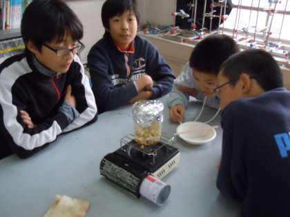 2月22日の理科クラブでは,熱を加えると爆発する実験をしました。ポップコーンを作りました。火を消すタイミングが難しく,余熱でさらに爆発が進む様子も観察しました。
