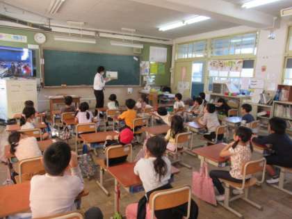 生き物が大好きな子どもたちが興味津々で聞いていました。
