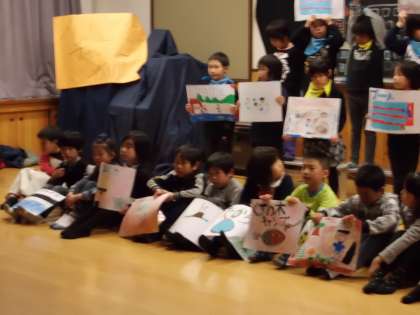 今年度最後の参観日,2年間の思い出を劇にして発表しました。