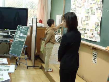 自然マップを指さして,花の名前など発表できました。