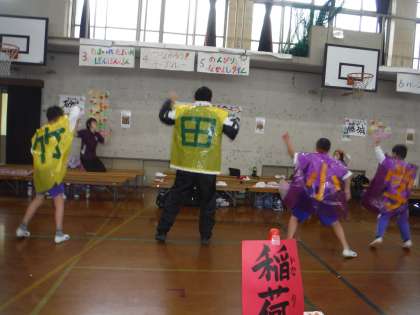 テープリレーでは左右の友達と足並み揃えて頑張りました。