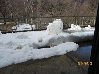 昨日作った雪の造形にキャンドルをともしていただきました。とてもきれいです。