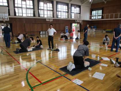 プール学習が始まります。今日は伏見消防署の方に来ていただき、普通救命講習を受講しました。
