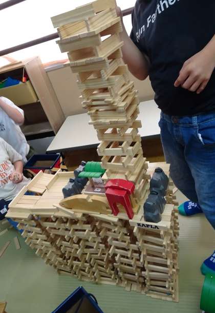 たっぷり水遊びをした後は、カプラで協力してとても緻密な塔を作っていました。