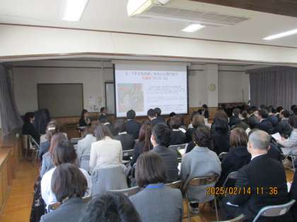 竹田幼稚園、改進保育所の5歳児を小学校にまねき、小学校の楽しさを伝えました。全国から多くの先生方が参観に来られました。