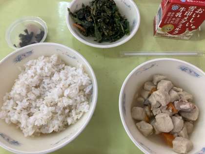 麦ごはん・高野どうふと野菜のたき合わせ・ほうれん草のごま煮・すぐき・牛乳