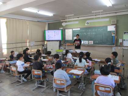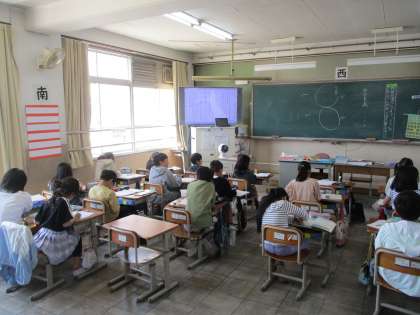 外国語の学習では英語を使ってコミュニケーションをしていました。国語の学習ではじっくり課題に取り組んでいました。