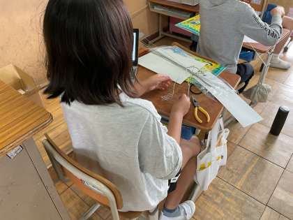 図工科の「美しく立つはり金」の学習が始まりました。ラジオペンチの使い方を学び、はり金を自由自在に動かして、よい作品を作っていこう!