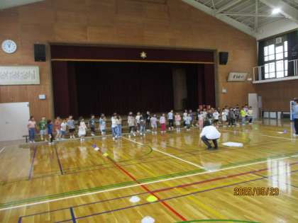 体育ではリレー遊びを楽しみました。学活では「1年生を迎える会」の練習をしました!