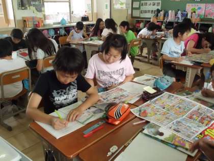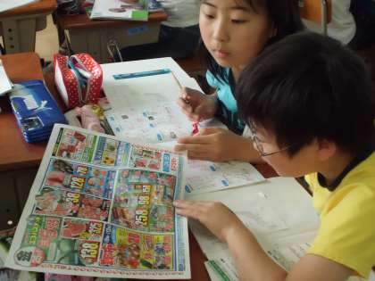広告を見ながら、それぞれの地域で生産されているものについて調べました。