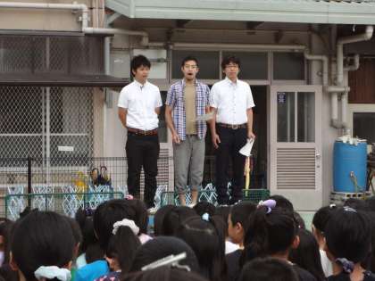 今日の児童集会では,今邑先生・田野先生・古野先生から,夏休みのわくわくプランについてのお話がありました。一年生にとっては初めてのわくわくプランです。自分の興味のあることや不思議に思ったことを夏休みという時間を自由に使える時期を利用して,深めていってほしいです。