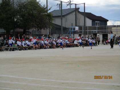 80m走、最後まで走り切りました。「鳴子!竹田の舞」リズムよく鳴子をならして踊れていました!