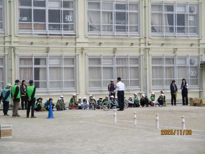 伏見警察署の方に来ていただき、安全な自転車の乗り方について学習しました。