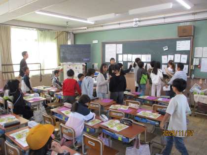 外国語の学習ではアルファベットを学びました。毛筆ではとめやはねに気を付けて丁寧に書きました。