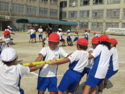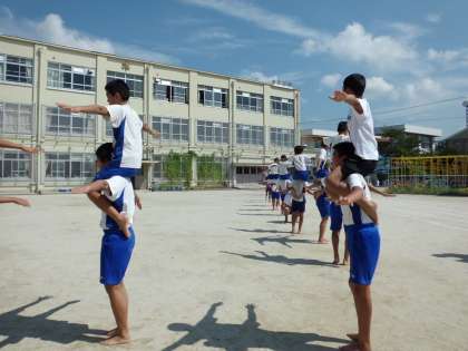 交流学習の体育では,学年の友達と力を合わせて練習しました。