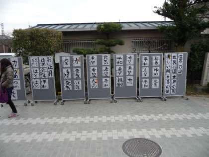 1月3日に城南宮で行った書き初め大会の作品を校門付近に展示しました。