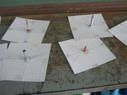 鉛筆と方眼紙を使って、太陽の動き方を調べました。