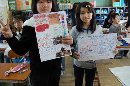 竹田駅や、お寺など、校区にあるものを一人ひとりが、いろいろと調べてまとめています。
