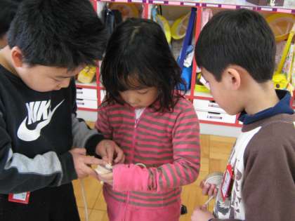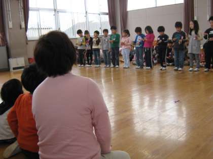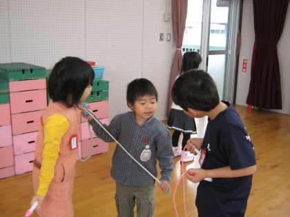 生活科の学習で冬の遊び、こま、けん玉、なわとびを竹田幼稚園のおともだちに、教えてあげました。