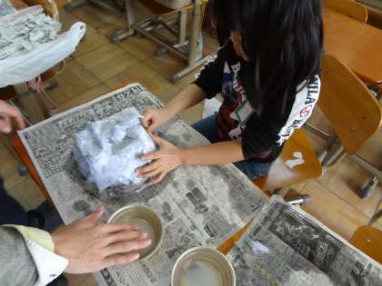 今日はい組の子どもたちがおめんの土台を作りました。