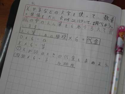 算数では、「文字と式」の単元の学習をしています。